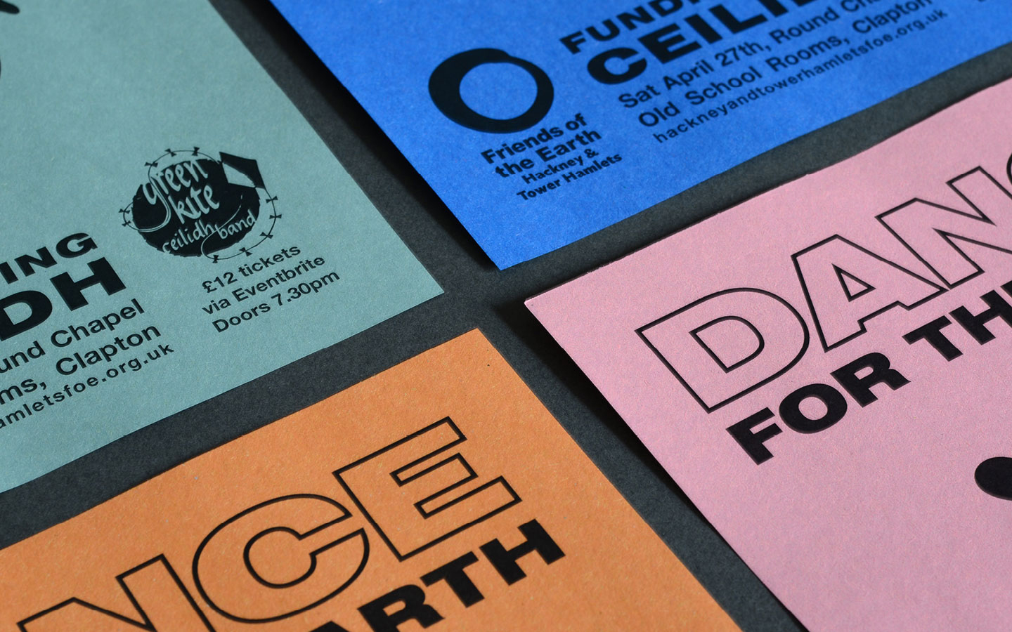 Series of posters to promote a fundraising event for the environmental organisation, helping their campaigns on air pollution, plastics, climate change and fossil fuel divestment. Printed on 100% recycle paper.
