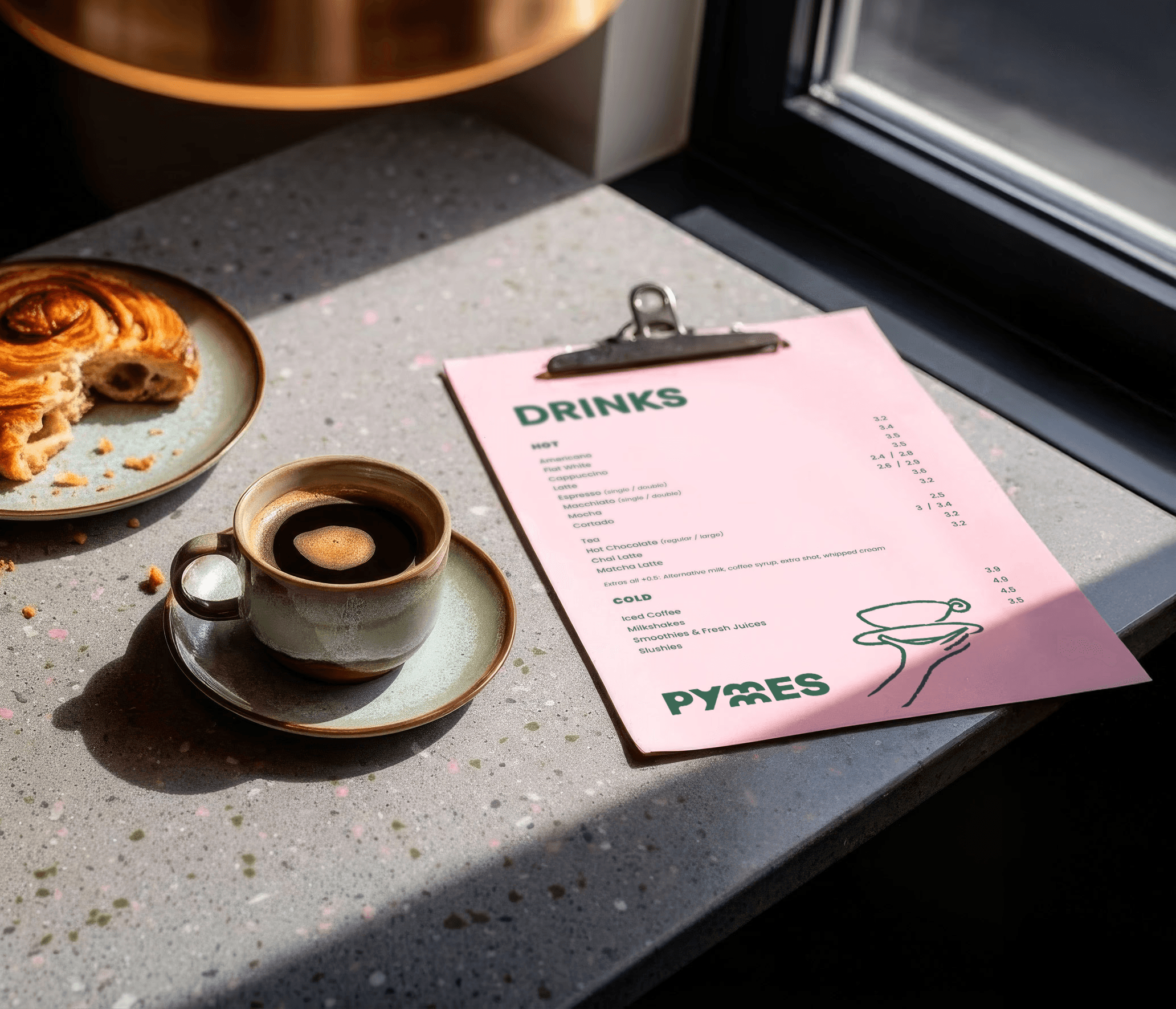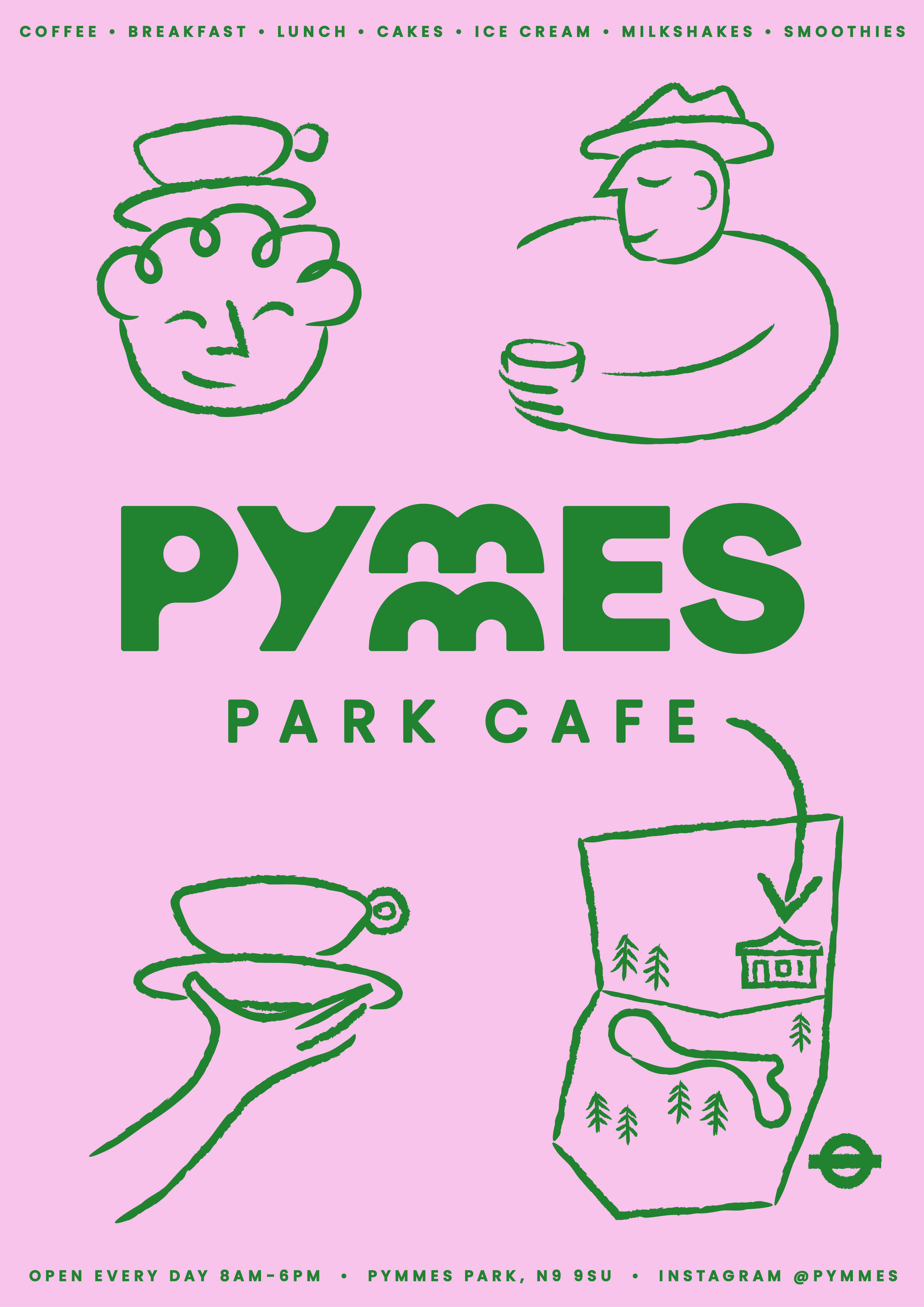 The double-M in Pymmes offered a natural canvas for two pairs of wings, leading to a logo celebrating the cafe's location.